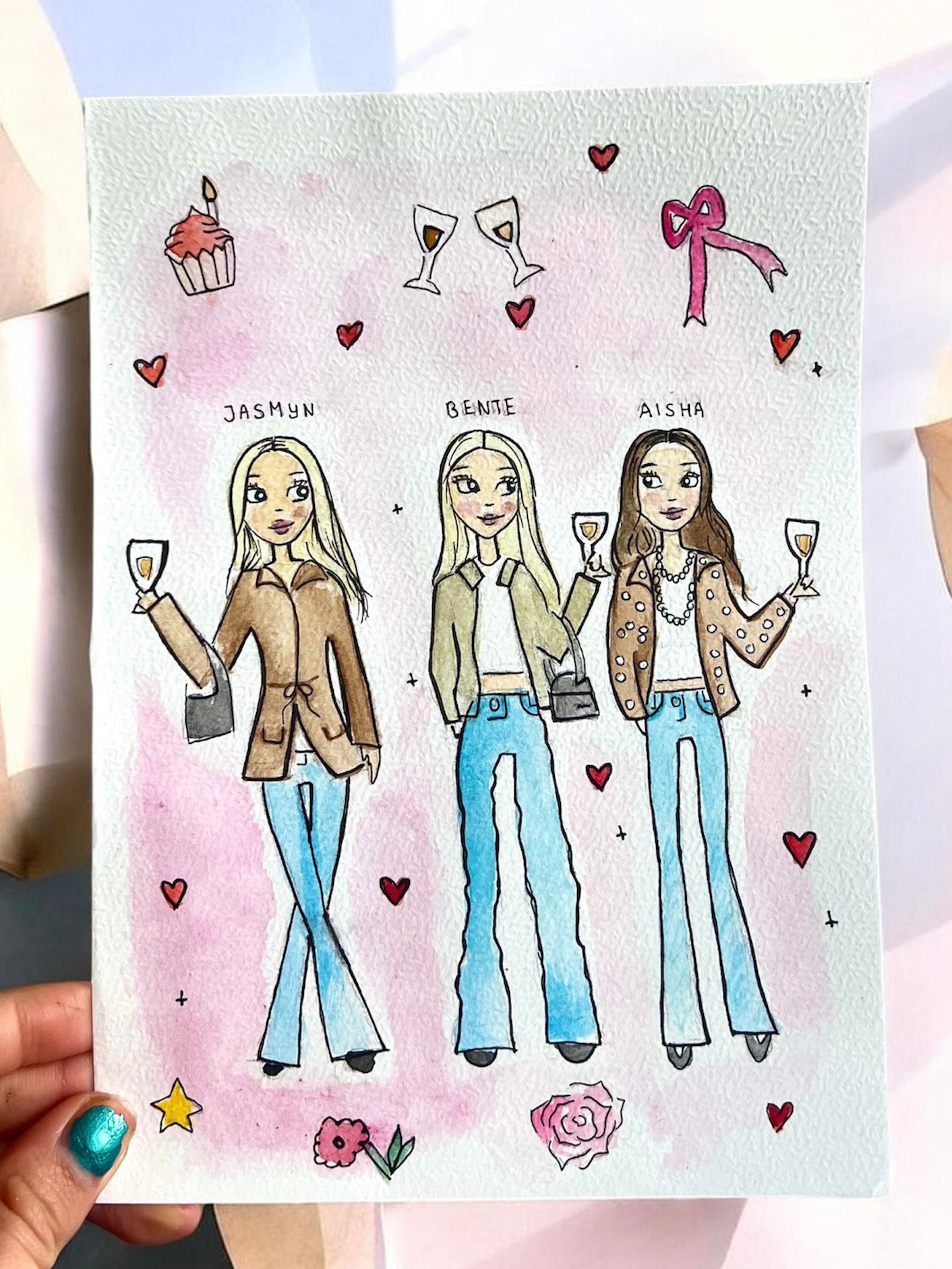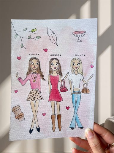 Gepersonaliseerde schilderingen van vriendinnen, huisgenoten, familie en nog meer. Ik leg vriendschappen vast op een kleurrijke, lieve en vrolijke manier vast. Dit is het allerleukste en persoonlijkste cadeautje om te geven.